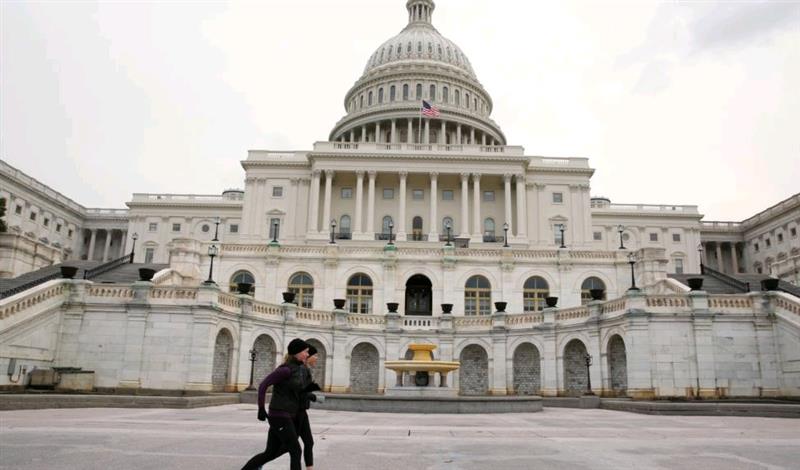 国会大厦前的长跑锻炼者。(2018年1月30日)