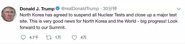 20日召开的朝鲜劳动党第七届中央委员会第三次全体会议上,金正恩作报告 据朝中社21日报道,20日召开的朝鲜劳动党第七届中央委员会第三次全体会议决定,从2018年4月21日起朝鲜将中止核试验与洲际弹道导弹发射试验。 报道说,当天会议上通过的多项决议内容还包括:为保证中止核试验的透明性,朝鲜将废弃北部核试验场。决议还说,中止核试验是为实现世界核裁军而进行的重要步骤,朝鲜将会加入到全面中止核试验的国际目标和努力中去。 决议说,在未受到核威胁或核挑衅的情况下,朝鲜绝不会使用核武器,朝鲜在任何情况下都不会转移核武器与核技术。 会议还决定,要对朝鲜的人力物力资源进行总动员,集中全力投入到发展社会主义经济和提高人民生活水平的斗争中。而为了能够为社会主义经济建设创设有利的国际环境、为维护朝鲜半岛和世界和平与稳定,朝鲜将积极与周边国家以及国际社会进行密切联系与对话。 报道说,当天的会议还就发展教育科学事业作出相关决议,并进行了包括补选金正阁为朝鲜劳动党中央委员会政治局委员等在内的人事任免。 报道说,朝鲜最高领导人金正恩出席当天的会议并作报告。他表示,核武器及运输打击手段的开发事业都已科学进行,在实现核武器兵器化已经得到验证的条件下,“现在对我们来说已经不再需要任何核试验和中远程及洲际弹道导弹发射试验。为此北部核试验场也完成了自己的使命”。 金正恩还表示,朝鲜劳动党中央2013年提出的关于经济建设与核武力建设并进的战略路线的各项历史任务已圆满完成,并提出了当下全党全国要集中一切力量进行社会主义经济建设的战略路线。金正恩还强调,为切实贯彻落实党提出的新的革命路线,就要重视和发展科学和教育工作。(记者程大雨吴强) 川普:这是一个重大进展! 美国总统川普随即在推特上表示,这对朝鲜和全世界而言都是一件好事,一个重大进展。他期待与金正恩的会面。