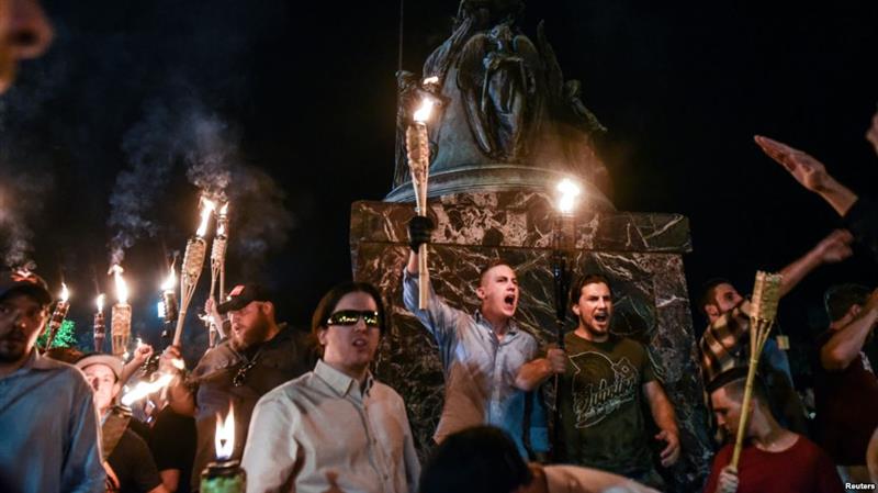 2017年8月11日,在维吉尼亚州夏洛茨维尔举行的团结右翼集会之前,白人民族主义者参加了维吉尼亚大学的火炬点火游行。 在引发致命暴力的白人民族主义者集会一周年到来之际,美国首都华盛顿市和邻近的维吉尼亚州正在准备应变措施。 华盛顿市长穆丽尔·鲍泽(Muriel Bowser)星期四说,她签署了一项命令,加强应急行动,准备应对定于星期日在白宫街对面公园举行的集会。 她在华盛顿一座犹太教堂举行的记者会上说:“这意味着我要准备好一切可以利用的资源…以确保活动安全。” 鲍泽还说:“有人来我们城市,唯一的目的就是散布仇恨。我们谴责仇恨,我们谴责反犹主 义,我们谴责我们预计会在这个星期日听到的言辞。” 华盛顿警察局局长彼得·纽山姆(Peter Newsham)提醒示威者说,华盛顿市禁止无照携枪。 他警告说,“警察将对任何会携带枪支的人保持高度警惕。” 维吉尼亚州州长拉尔夫·诺瑟姆(Ralph Northam)和一年前举行集会的夏洛茨维尔市的官员宣布从星期五至星期日在夏洛茨维尔和华盛顿郊外的维吉尼亚州北部的部分地区进入紧急状态。 诺瑟姆将紧急状态称为一旦发生暴力事件可以迅速调动资源的“行政工具”。可调度的力量包括维州国民警卫队。 维吉尼亚州警察总监加里·塞特尔(Gary Settle)表示,周末将有700多名州警值班,并将“充分做好了行动准备”,以防止暴力行为。 2017年,白人民族主义者和新纳粹团体在夏洛茨维尔的一处公园举行“团结右翼”(United the Right)集会,以抗议拆除美国内战期间南方邦联将领罗伯特·李(Robert E. Lee)的雕像的计划。 那次集会吸引了与他们针锋相对的抗议人士,两组人员很快爆发冲突。自称为白人至上主义者的小詹姆斯·亚历克斯·菲尔茨(James Alex Fields,Jr。)驾车高速冲向对方人群, 32岁的希瑟·海耶(Heather Heyer)被撞死。 两名正在执勤的维吉尼亚州警察随后因他们的直升机坠毁而身亡。 联邦检察官蒂姆·希菲(Tim Heaphy)批评夏洛茨维尔官员和州警的表现,称他们“没有‘挺身而出'保护人们的生命。” 夏洛茨维尔市计划举办几项活动,以回顾去年发生的事情并促进种族关系的恢复。 去年集会的发起人杰森·凯斯勒(Jason Kessler)在夏洛茨维尔市拒绝给他许可证后,发誓要于8月12日在华盛顿白宫街对面的一个公园举行集会。 夏洛茨维尔市离华盛顿市近187公里,但是官员们和白人民族主义集会的反对者担心一些示威者可能会前往华盛顿或附近的北维州部分地区。 诺瑟姆周三告诉位于里士满的WRVA广播电台说:“如果在华盛顿发生某些事情,它很容易影响到北维州。” 维吉尼亚州应急管理部协调员杰夫·斯特恩(Jeff Ster)说:“我们将其视为全州范围的事件。”