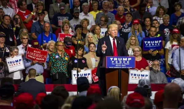 Trump spoke from a teleprompter during the rally, as he has been doing for the past week or so, although he went off script quite a bit during the event, speaking off the top of his head and expanding on the prepared text.